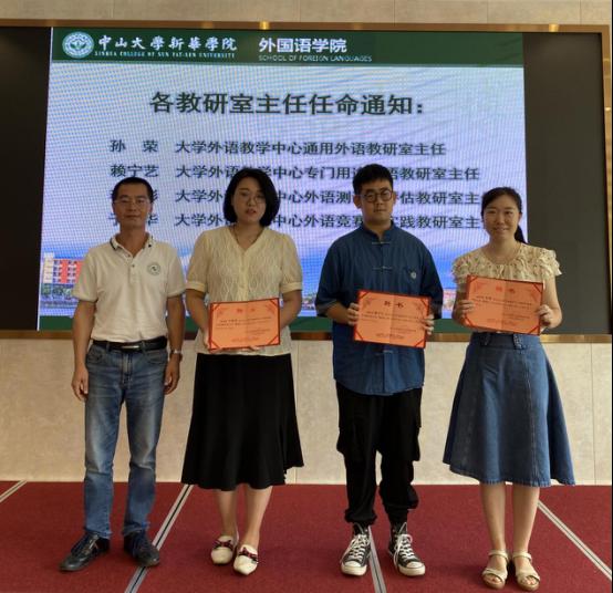 图:院长廖益清为英语专业教研室主任颁发聘书