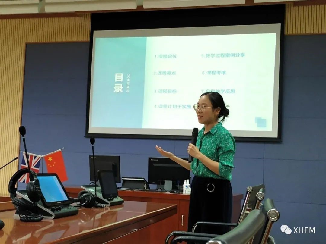 每位参赛老师通过PPT演示的方式向在场的评委老师们逐一阐述自己的课程定位,课程亮点,课程目标和教学计划,充分展现了参赛老师各具特色的教学理念。如周琴娣老师所展示的“实践为主,授课为辅”的教学方法,谢杭航老师所提出的“因材施教,以人为本”的教学理念,杨镒境老师利用网络平台开展的“翻转课堂,实用为主”的理念,以及邱泽林老师呈现的“以辩促思,以赛促学”的教学思想。