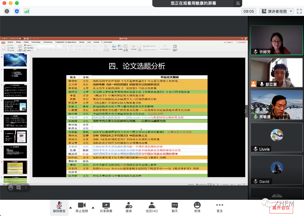 周敏康教授逐一分析学生论文选题