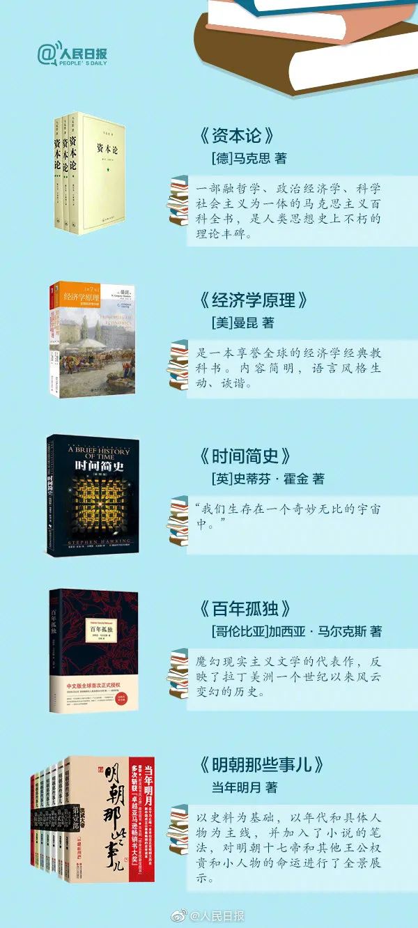 注:该书单系人民日报从北京大学、清华大学、复旦大学、浙江大学、南京大学、中山大学等多所高校图书馆借阅排行榜中,精选出的40本上榜好书。