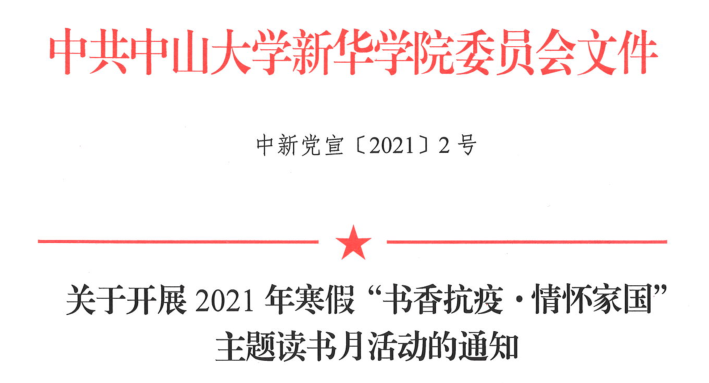 为深入学习宣传贯彻党的十九大和十九届二中、三中、四中、五中全会精神、全国教育大会精神,全国、全省高校思想政治工作会议精神,落实立德树人根本任务,迎接中国共产党建党100周年,激发广大师生爱国热情,推动书香校园建设,传承弘扬“多读书、读好书、好读书”的良好校风学风;在国际国内疫情变化新形势下,激励广大师生员工树牢“四个意识”,坚定“四个自信”,坚决做到“两个维护”,传承弘扬伟大抗疫精神,在寒假期间始终保持身心健康、补充精神之钙,学校决定在全校师生员工中广泛开展2021年寒假“书香抗疫·情怀家国”主题读书月活动