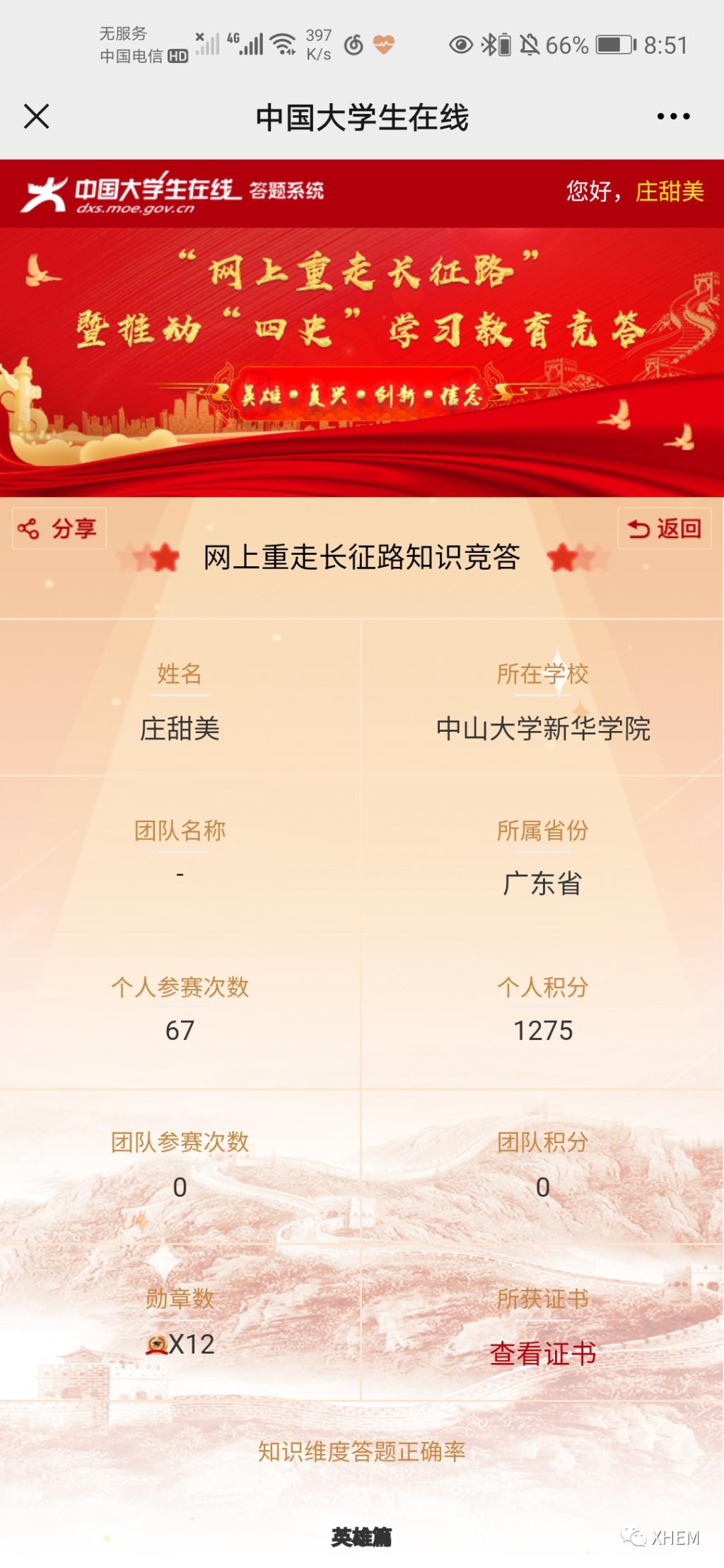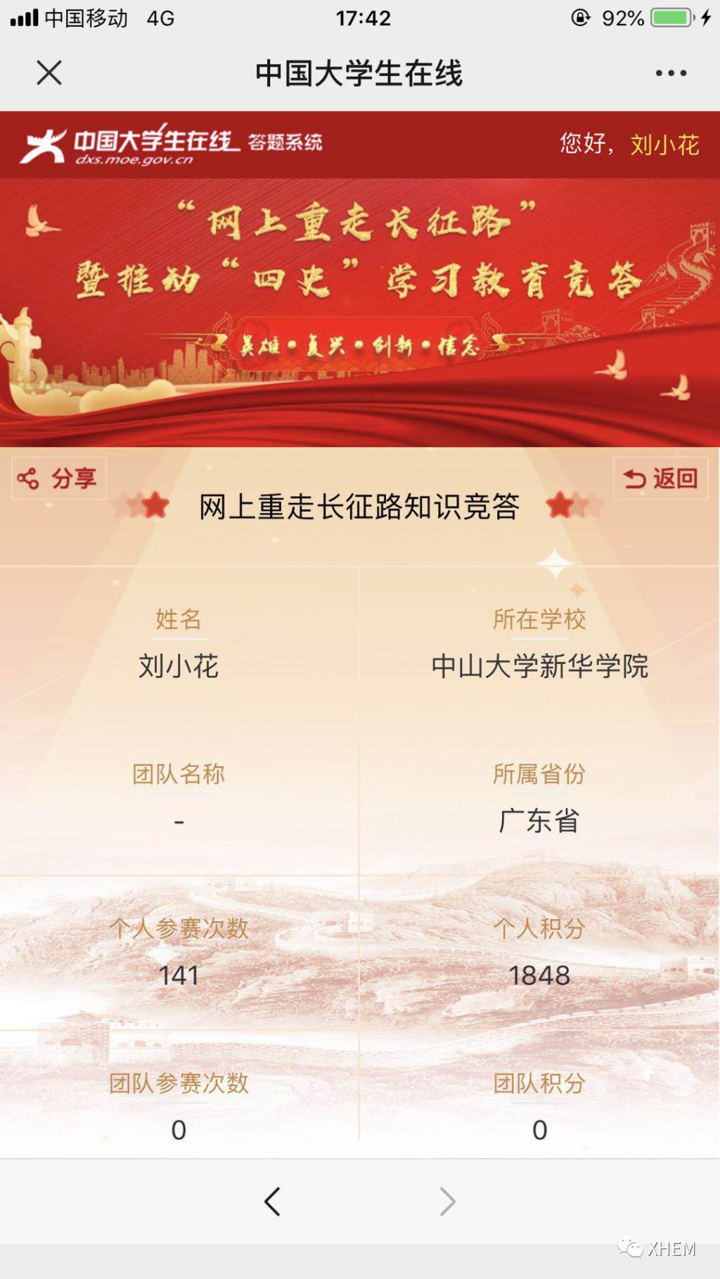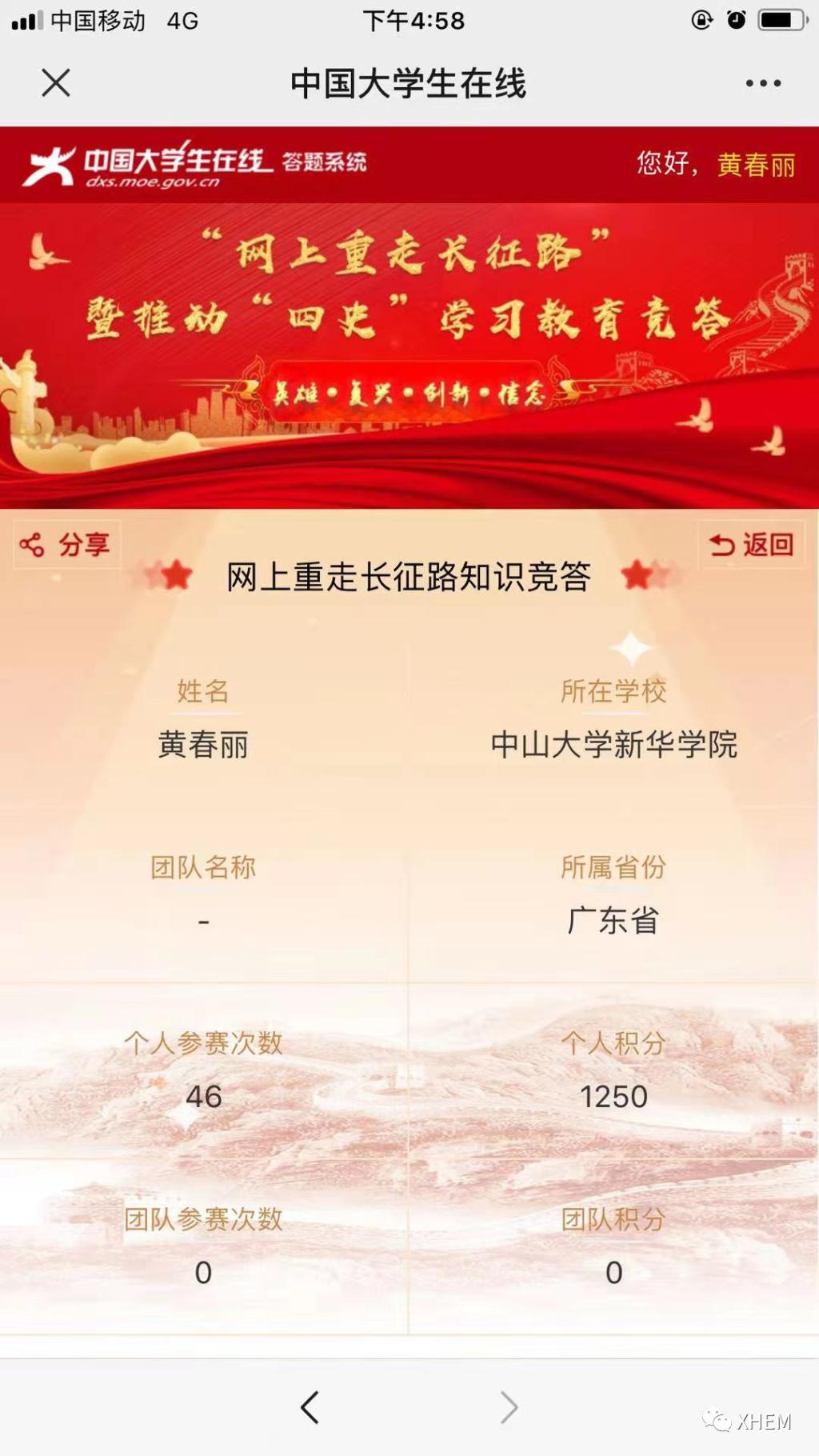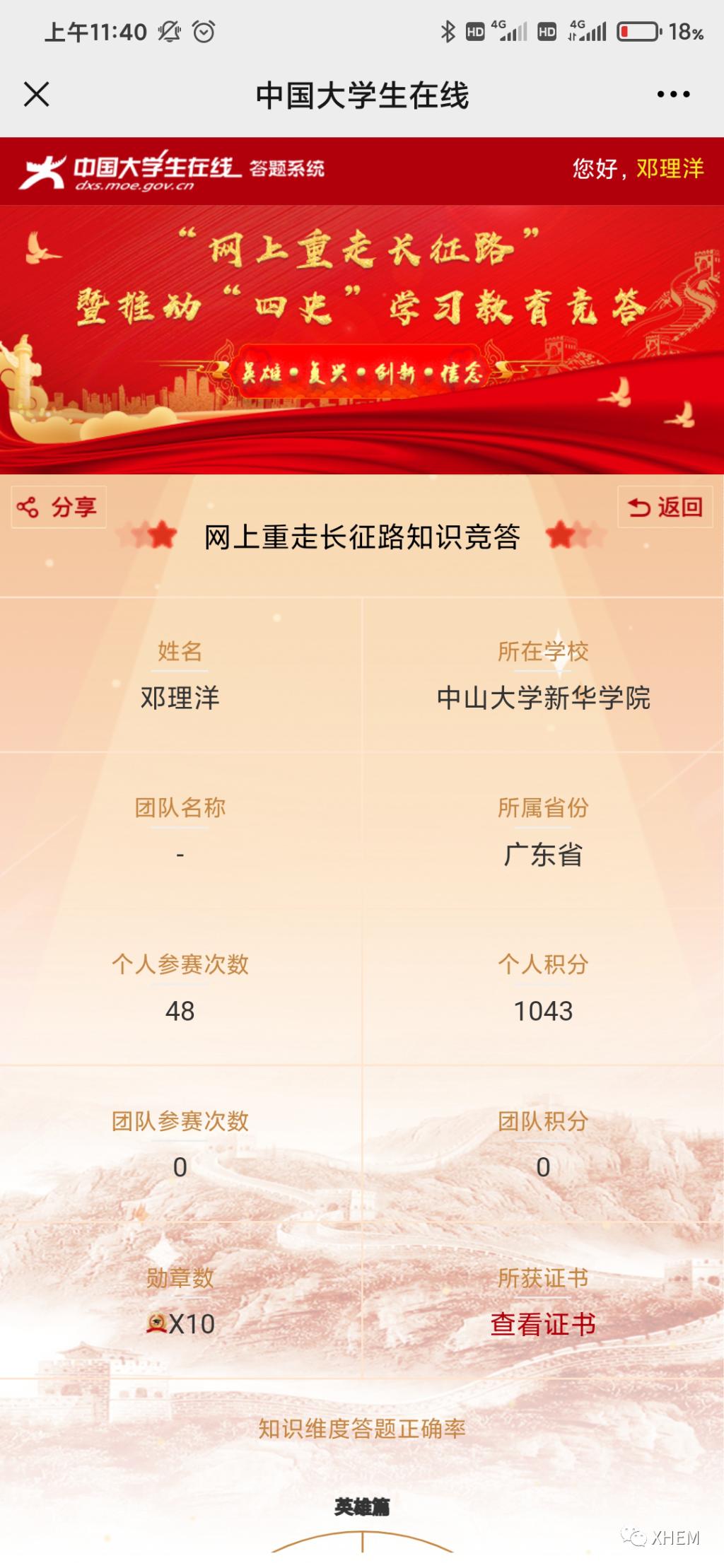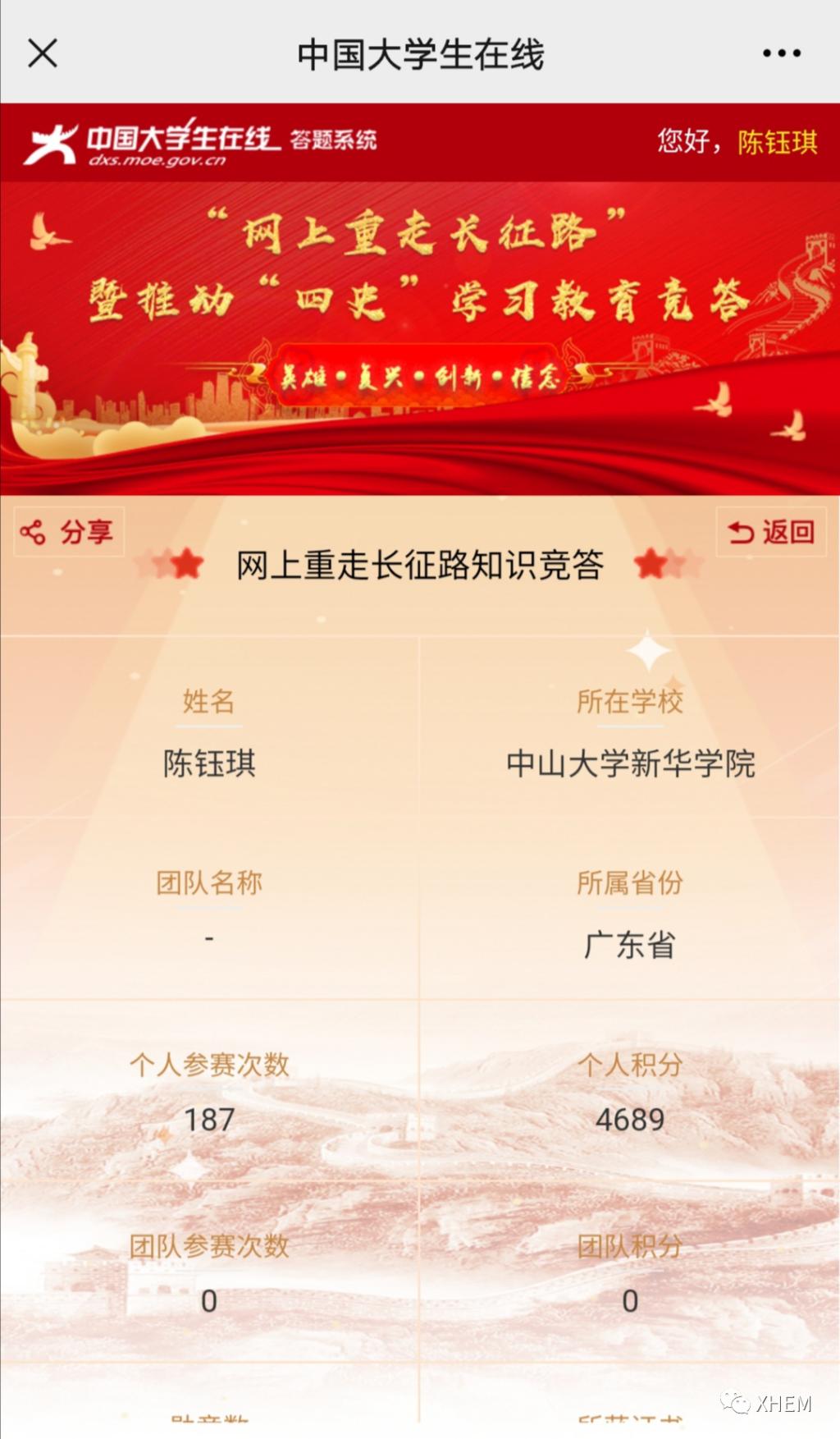 为了深入学习贯彻习近平总书记关于学校党建和思政工作的重要指示批示精神、习近平总书记在党史学习教育动员大会上的重要讲话精神,推动各地各高校深入学好党史、新中国史、改革开放史、社会主义发展史(以下简称“四史”),引导高校学生以昂扬的状态迎接中国共产党建党100周年,广州新华学院122cc太阳集成游戏学生党支部于3月20日至4月7日18:00时开展了“学习百年党史,凝聚前进力量” 122cc太阳集成游戏党史积分答题活动,现将活动结果公布如下: