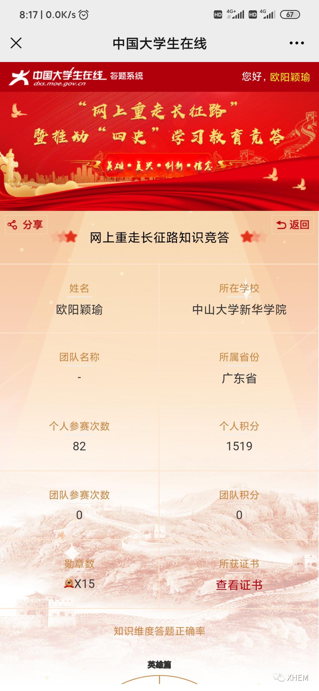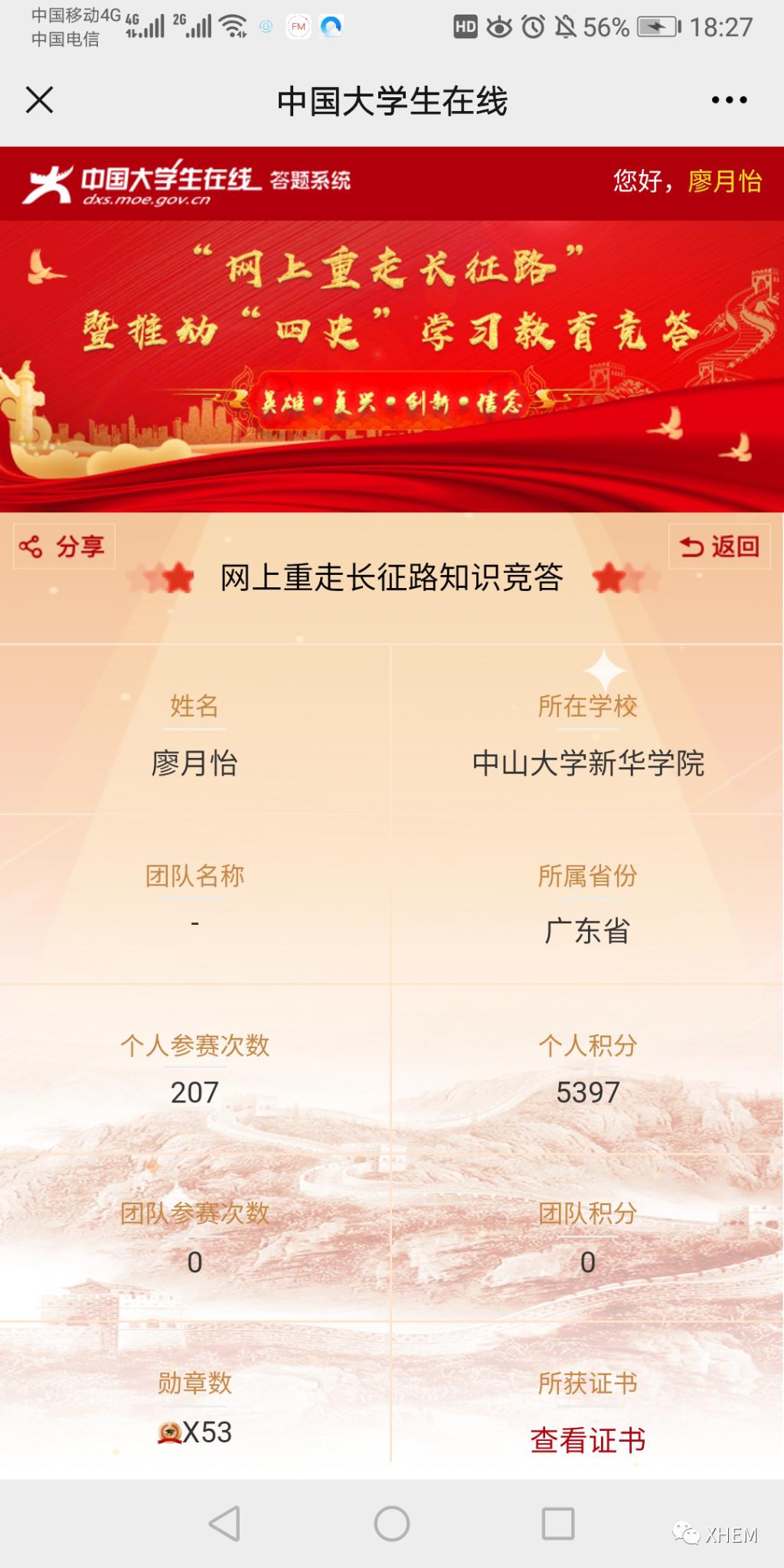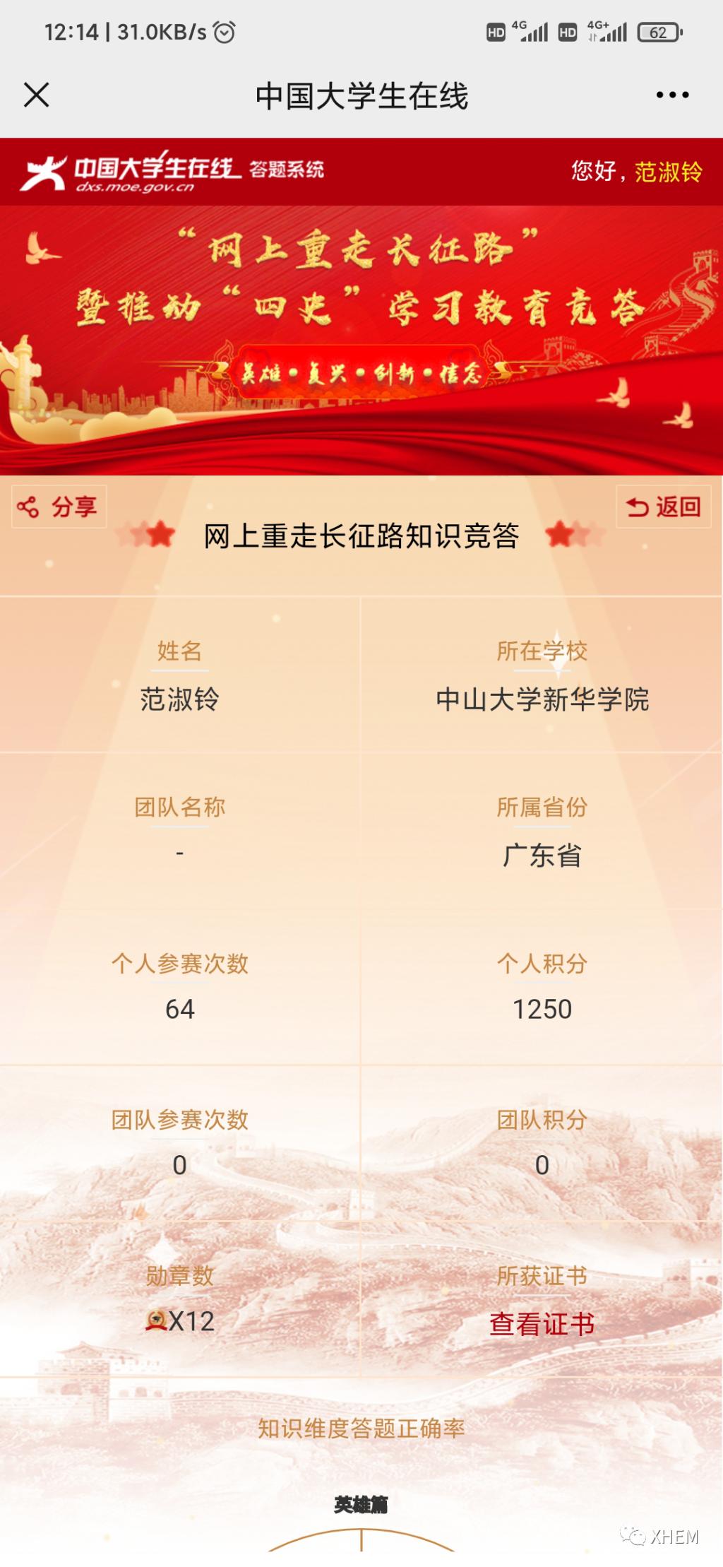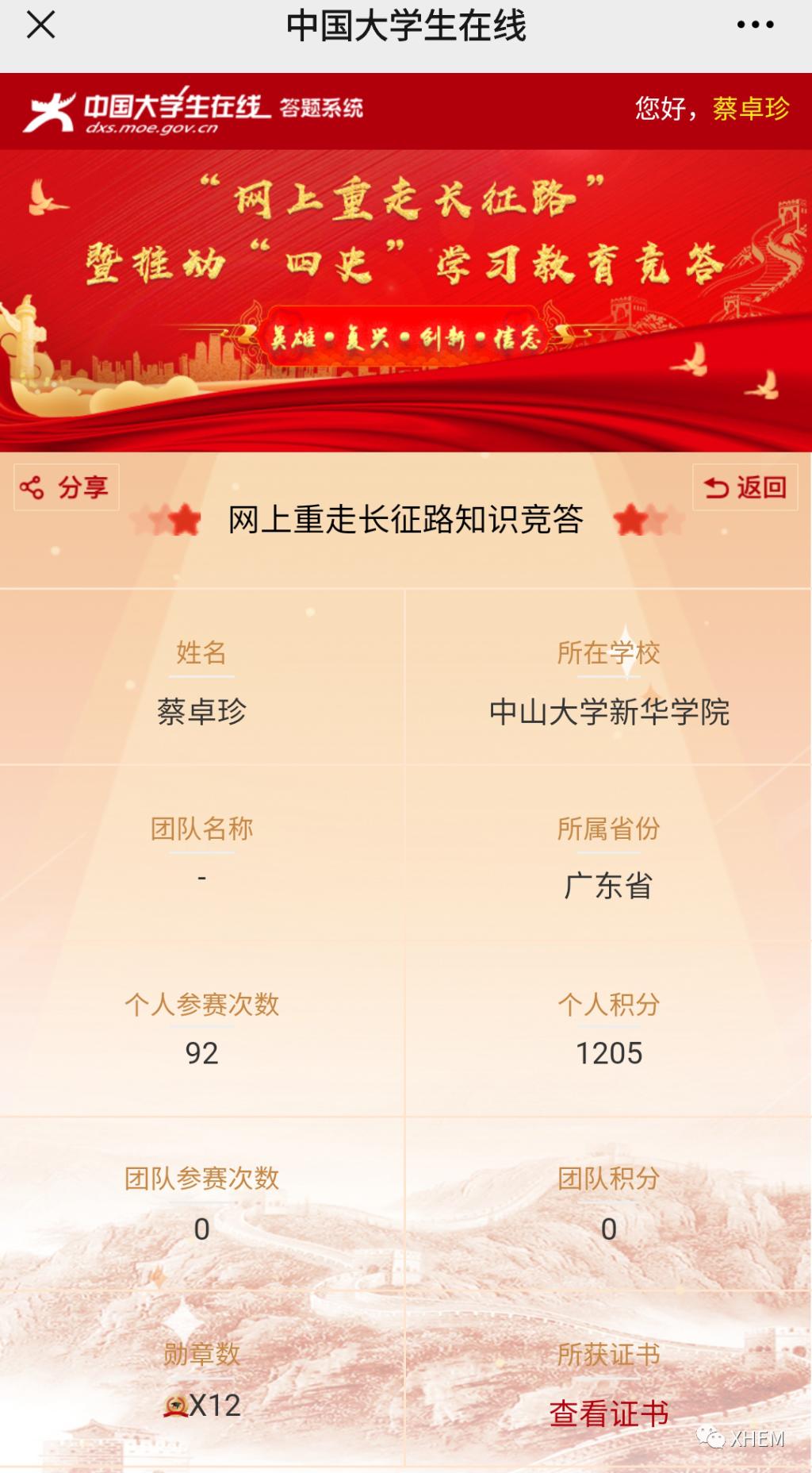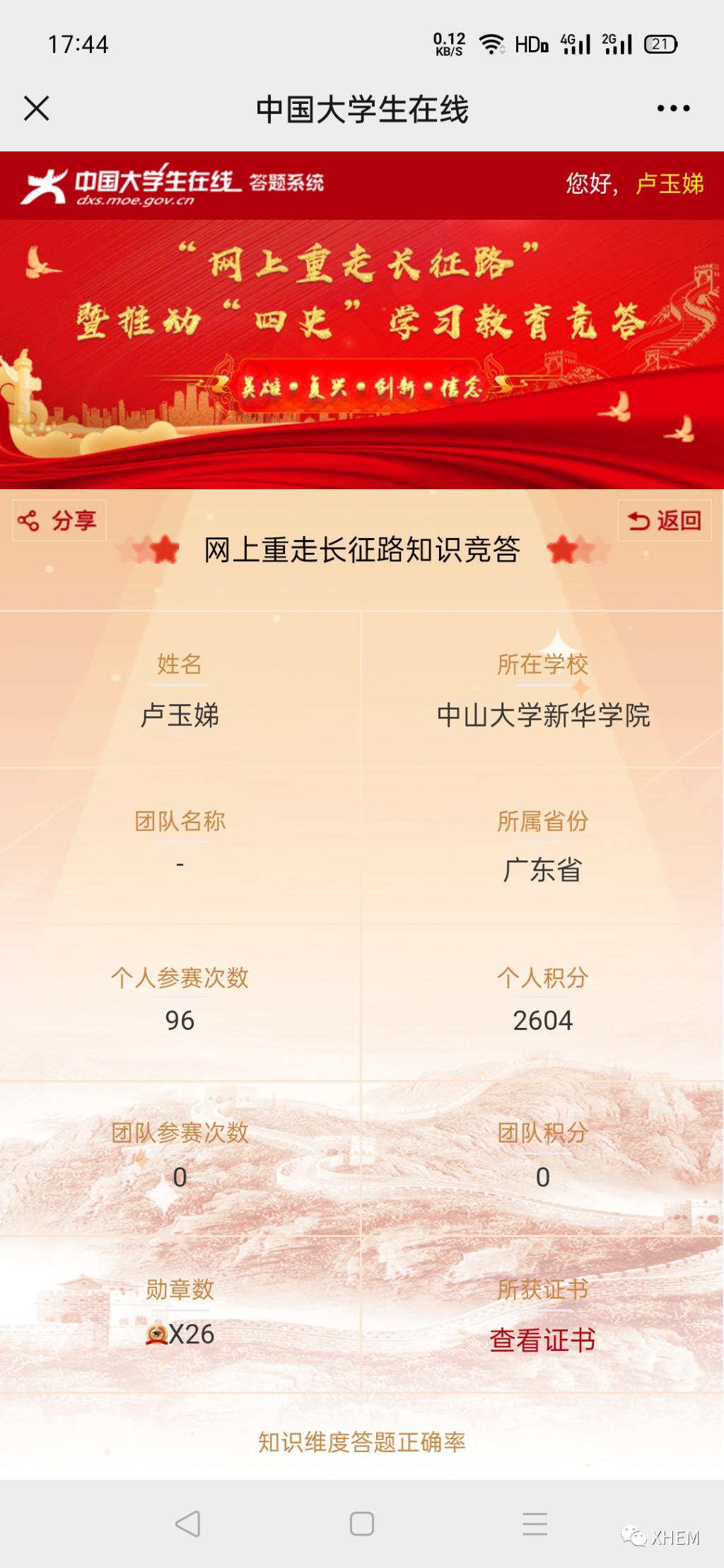 为了深入学习贯彻习近平总书记关于学校党建和思政工作的重要指示批示精神、习近平总书记在党史学习教育动员大会上的重要讲话精神,推动各地各高校深入学好党史、新中国史、改革开放史、社会主义发展史(以下简称“四史”),引导高校学生以昂扬的状态迎接中国共产党建党100周年,广州新华学院122cc太阳集成游戏学生党支部于3月20日至4月7日18:00时开展了“学习百年党史,凝聚前进力量” 122cc太阳集成游戏党史积分答题活动,现将活动结果公布如下: