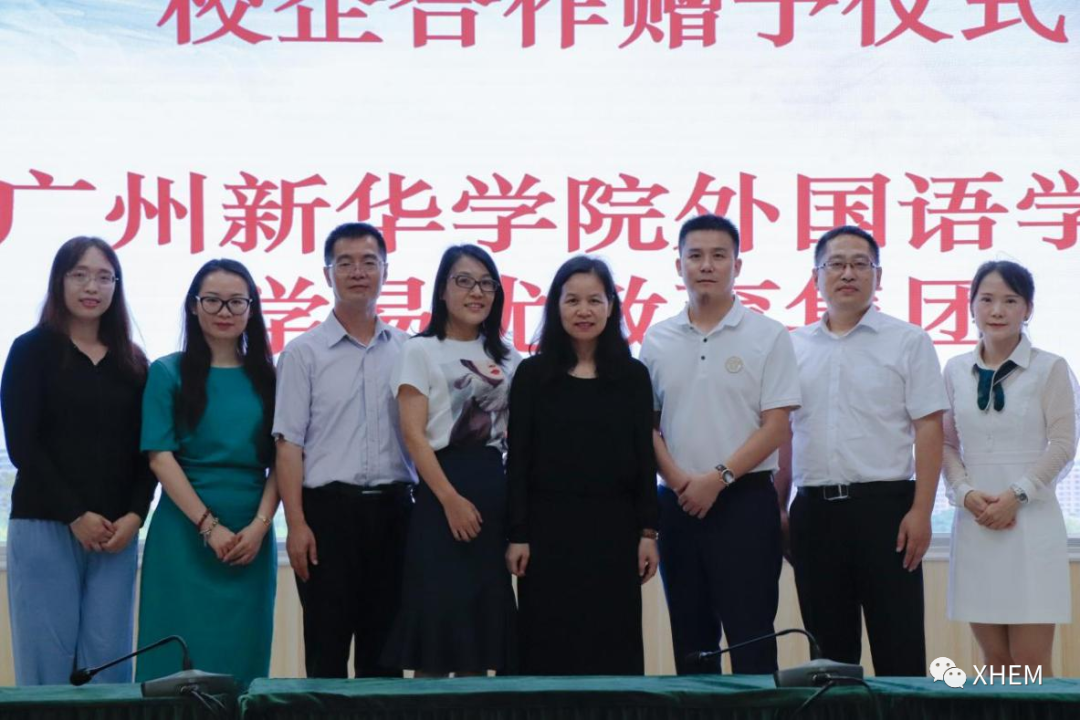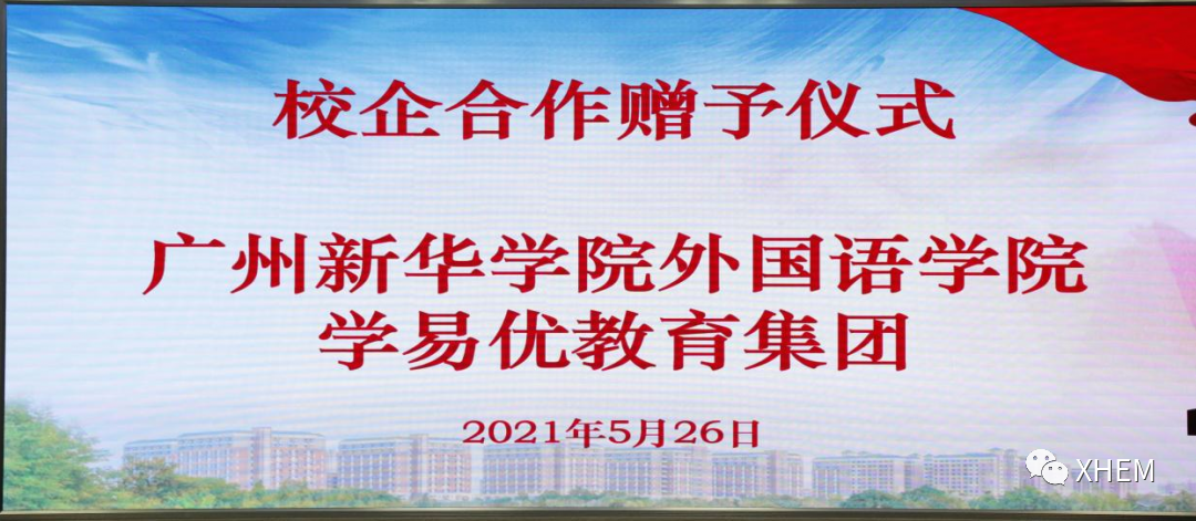 2021年5月26日下午2时,广州新华学院122cc太阳集成游戏与学易优教育集团校企合作赠予仪式在格物2B208举行。参与赠予仪式的外院领导包括:廖益清院长、李向奇副院长、欧衍伽副书记、李文蓓院助。参与赠予仪式的学医有教育集团高层包括:钟星总裁、季立宗副总裁和何银花人力资源总监。在赠予仪式前,廖益清院长表示希望与学易优教育集团开展多维度的合作,探讨多元化的合作模式。何银华总监则表示“学易优”对大学生的重视与青睐,希望双方继续深化合作,开展更多有意义的活动,帮助学生提高个人发展。