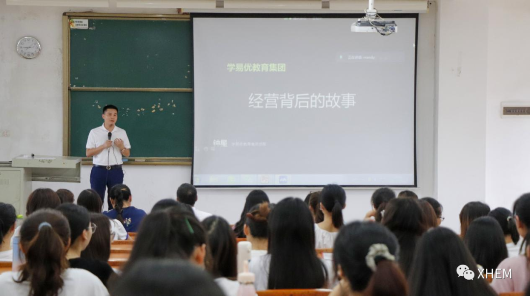 讲座伊始,钟星先生向同学们介绍了学易优教育集团的发展状况以及自身的基本信息,并就下面的故事分为企业发展、企业文化、团队情况和增长原因四部分内容进行演讲。