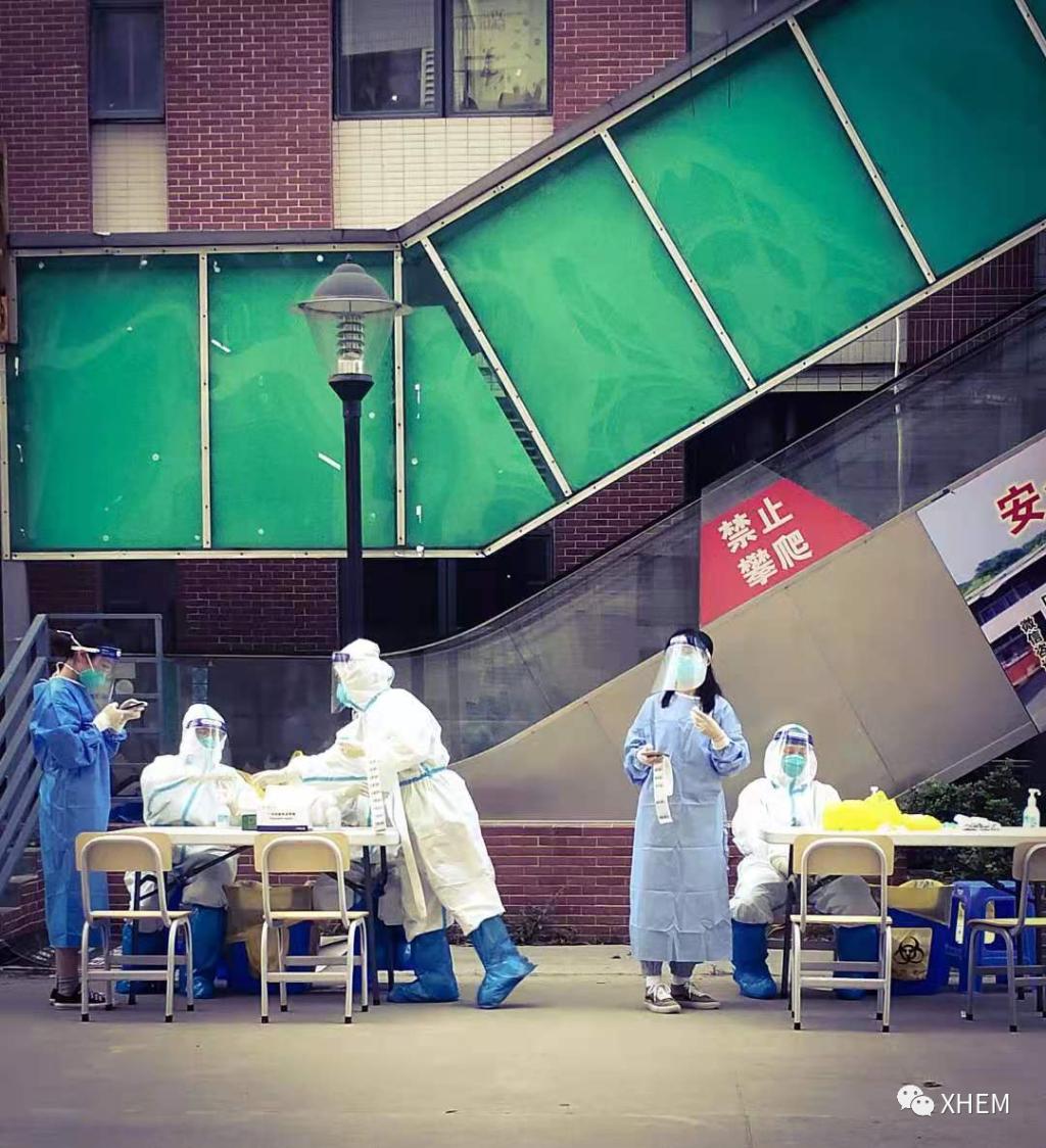 “穿上所有装备,与医护人员一起并肩作战,这是一件非常有意义的事!虽然我只是穿了5个小时左右的防护服,但身上几乎都是汗水,脸已经被压得出现一条深深的痕迹了。令人难以想象的是,我们的医护人员穿着比我们更厚的防护服一整天地检测核酸,会有多么难受。我们不敢喝水,也不敢上厕所,因为一脱就会浪费防护物资。上一年武汉等地医护人员的辛酸莫名地涌上心头,令人心疼。由衷感谢每一位医护人员的无私奉献!各位志愿者朋友们也辛苦了!非常感谢学校全体师生的积极配合完成核酸检测工作!”廖艺雯同学在结束志愿者工作后发出感叹。