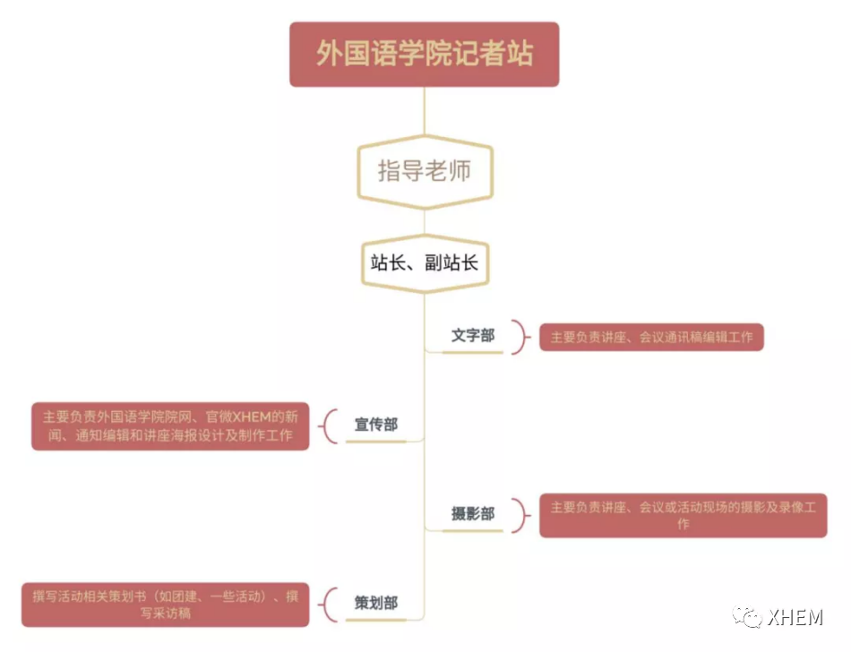 接下来,敲黑板记重点啦!关于外院记者站的组织部门,一张图告诉你: