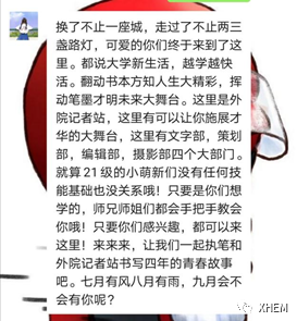 欢迎21级的新生们进入我们外院记者站这个小家庭,来到这里一定能让你们的大学生活充实而有意义,并且发挥你们的特长,培养你们的兴趣,让我们的组织更让我们自己的生活充实、丰富。