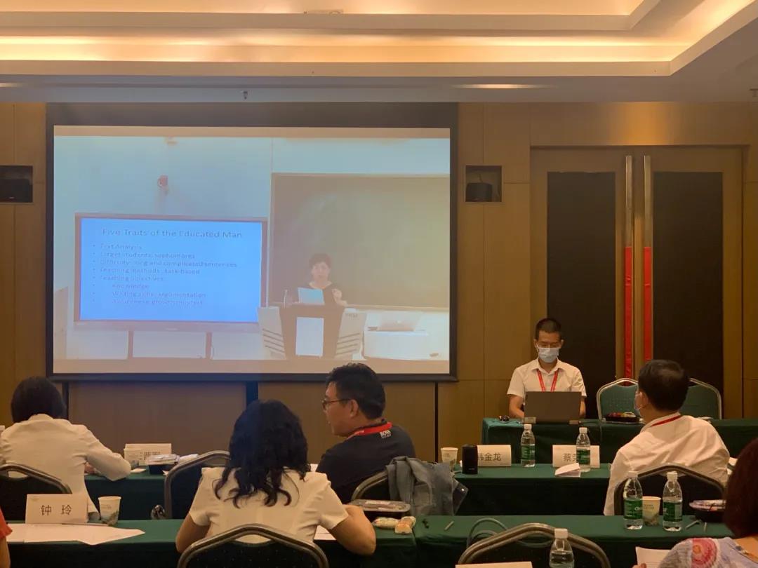 大赛商英专业组评委组组长、中山大学许德金教授在总结点评中对参赛教师们的表现表示充分肯定。许德金教授总结分析了优秀教师的教学理念,并指出老师们在设计课程时要先明确课程的性质,并将所用材料与课程实际相结合,真正将课程改革落到实处。另外,要围绕“知识”“能力”“素质”这三大板块对课程进行设计,将“课程思政”理念融入到教学设计当中。
