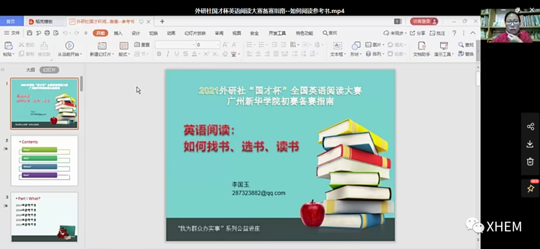 为了更好地指导学生比赛,充分发挥教工党员的模范带头作用,赛前组织了三场“我为群众办实事”的系列线上公益讲座,其中两场是以阅读为主题的备赛讲座,让学生能够更有针对性地进行备赛。