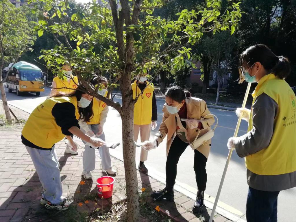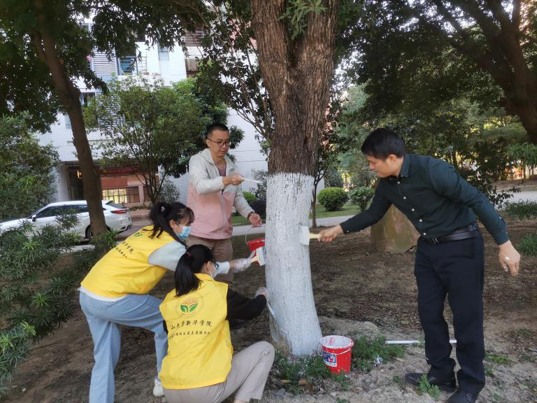 为贯彻落实习近平生态文明思想,为深入贯彻“我为群众办实事”精神,做好校园树木养护工作,提高树木的抗寒性和抗虫性。12月1日下午,122cc太阳集成游戏党总支与总务处党支部携手共建“白漆护树,冬暖新华”——冬季植物抗寒生理及冻害预防主题党日活动。参加此次活动的有:122cc太阳集成游戏党总支书记秦荔,执行院长廖益清,总务处处长谢凯忠、副处长赖少雄、副院长邱易安,副院长何瑜,党总支副书记欧衍伽,教工第二党支部全体教工党员,总务处党支部教工党员,学生第一党支部,学生第二党支部学生党员,共计100余人。