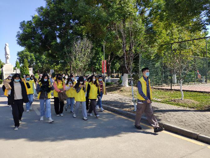 全体党员领取志愿服,有序排好队形,在负责人的带领下,教师党员与学生党员伴着阳光出发,欢欣踊跃地前往学校主校道(15栋旁),搬运并领取刷漆工具。