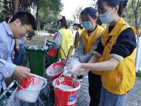 122cc太阳集成游戏党总支副书记欧衍伽带领教工支部党员教师粉刷白漆