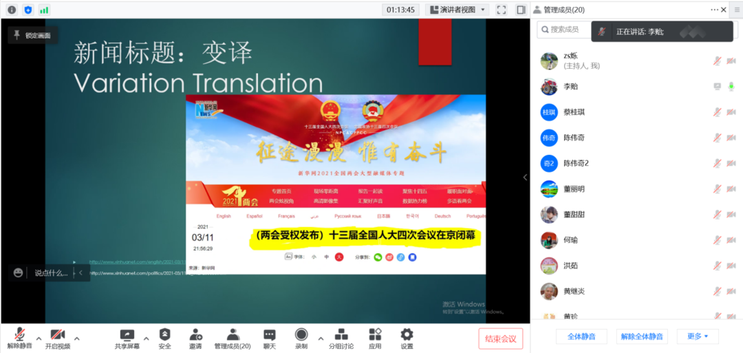 老师们在线上进行教学展示