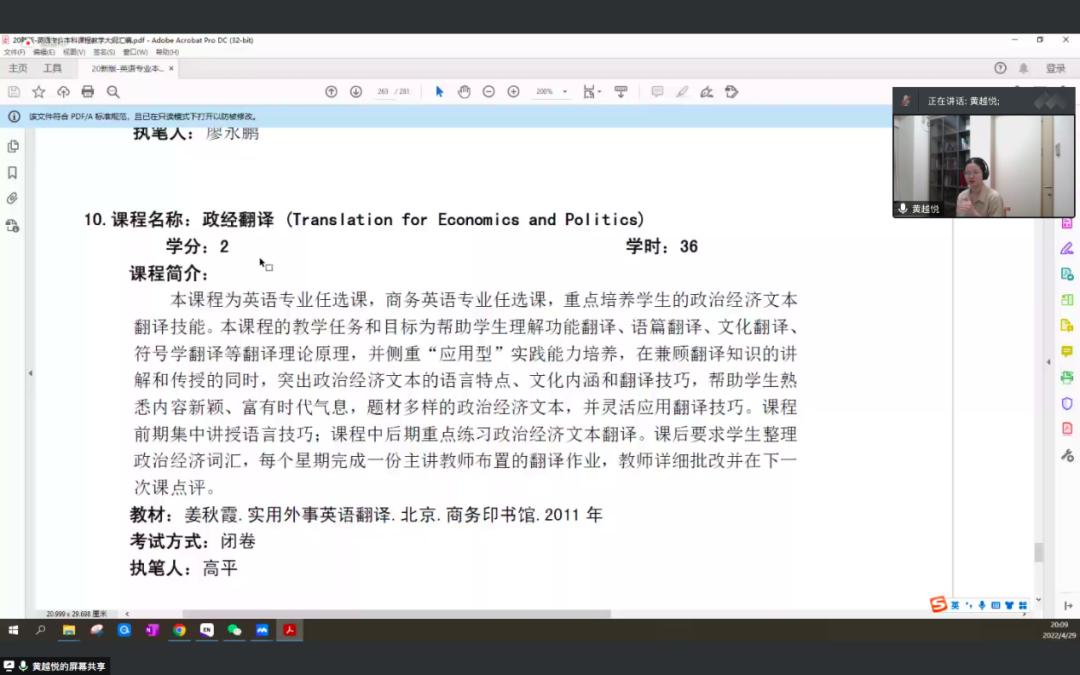黄越悦老师介绍翻译方向的特色课程