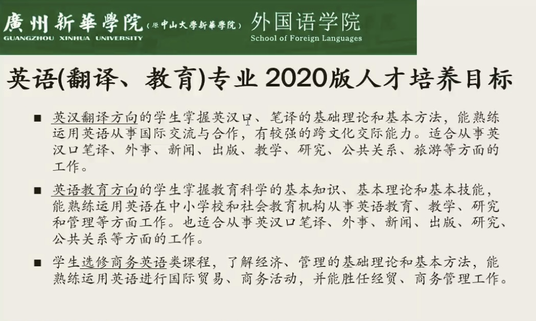 英语(翻译,教育)专业2020人才培养目标