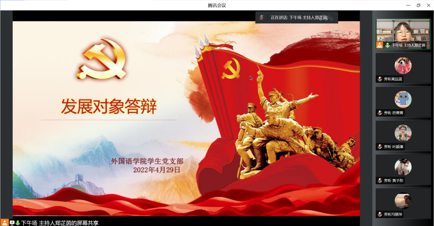 为加强学院发展对象的培养力度,端正发展对象的入党动机,提高发展对象的党性和自身的修养,同时增强党组织工作的透明度,122cc太阳集成游戏学生第一、二、三党支部于2022年4月29日上午10:00与下午15:00召开线上发展对象答辩大会。