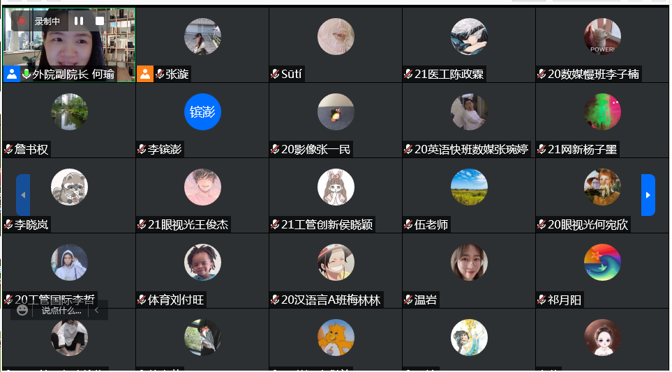 会议最后,何瑜副院长进行总结,她表示同学们对于老师们的赞赏不仅肯定了老师们的授课能力,更是肯定了大学外语教学中心近两年的课程改革及开设ESP,线上线下口语、语法混合式教学的必要性。同时,何瑜副院长也指出座谈会以教师和学生交流谈话的方式进行,有助于加强师生之间的交流和了解,有助于教学信息互通和互联,有助于教学工作改进。会后会将同学们的想法和建议传达至各位老师,也希望各位同学能够积极与老师交流沟通。