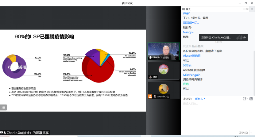 参会师生们从徐总的讲座里了解了市场对翻译和语言服务行业的人才需求,也开拓丰富了语言服务的行业需求以及语言服务广阔的应用天地。徐总也对大家明确表达了要深耕某一领域,夯实语言基础,丰富实战经验的殷切期望。参会师生也利用此难得的机会,与徐总进行了互动和提问,受益匪浅。