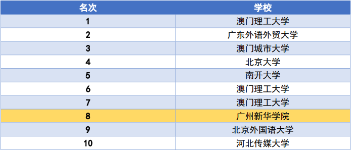 入围学校排名一览表