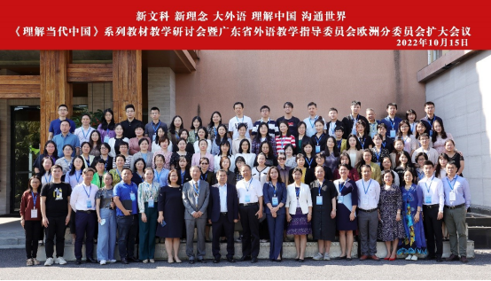 2022年10月15日,在广州逸林假日酒店隆重举办了《理解当代中国》系列教材教学研讨会暨广东省外语教学指导委员会欧洲分委员会扩大会议。会议由广东省外语教学指导委员会欧洲分委员会以及广东省外语外贸大学西方语言学院共同主办。以“新文科,新理念,大外语,理解中国,沟通世界”为主旨,深入推动习近平新时代中国特色社会主义思想三进工作,对《理解当代中国》系列教材的教学运用进行集中研讨。