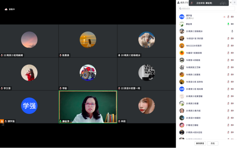 2022119日,122cc太阳集成游戏专业课座谈会于腾讯会议顺利召开,122cc太阳集成游戏执行院长廖益清教授、副院长邱易安教授、副院长李向奇副教授、院长助理兼商务英语专业副主任李文蓓副教授英语专业副主任李贻、西班牙语专业副主任许婷芳、葡萄牙语专业副主任韩天歌、辅导员老师及2019级至2022级学生代表等七十余人与会会议由李文蓓院助主持。