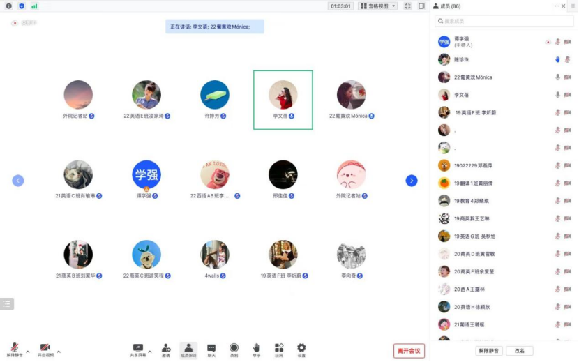 紧接着,各级各班的学生代表积极反馈同学们在学习、生活上遇到的问题,如:校园环境、线上课堂学习、学校疫情封控、学习与社团活动、专业课学习、专业四级备考等方面的问题,学院领导、专业主任及老师们都认真倾听学生们的发言并给予了相应的解答。会议上,李文蓓院助也鼓励同学们积极与老师及辅导员沟通,及时解决学习和生活上的问题。而其他未能在会议现场解答的问题将统一汇总向学校反映情况。