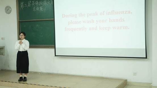 大赛伊始,廖益清院长为比赛致开幕词。首先,廖院长表示此次授课大赛的目的,是为了锻炼学生的英语教学技能,拓展就业门路,丰富校园文化。她希望选手们在比赛中可以展现出良好的随机应变的能力、口头表达能力以及思辨能力。最后,廖院长祝愿参赛选手都能够取得优异的成绩。