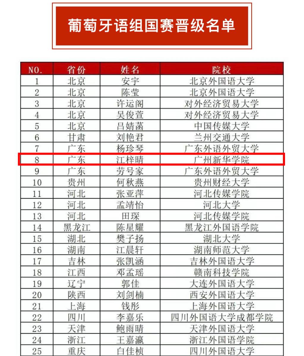 【喜报】2020级葡萄牙语B班江梓晴晋级外研社国才杯外语能力大赛葡萄牙语组国赛