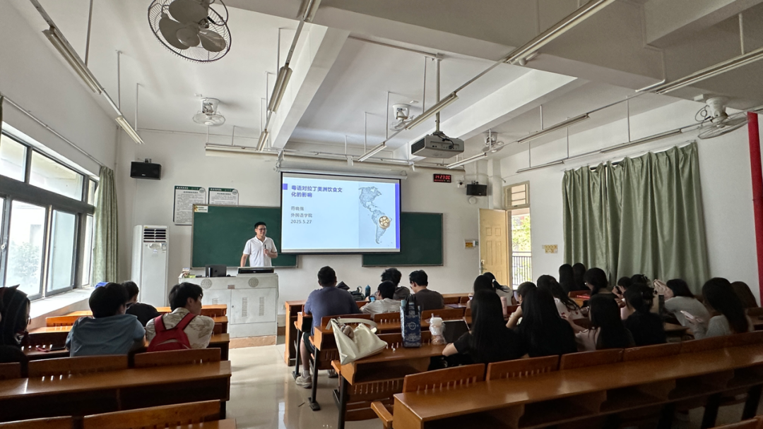 为增强讲座的直观性与互动性,符老师结合图片、视频等多媒体资料进行讲解,使内容更为生动易懂。讲座过程中,学生们踊跃提问、积极互动,现场气氛热烈。许多同学表示,通过本次讲座,不仅加深了对粤语及岭南文化的认识,也对拉丁美洲的文化多样性产生了浓厚兴趣。