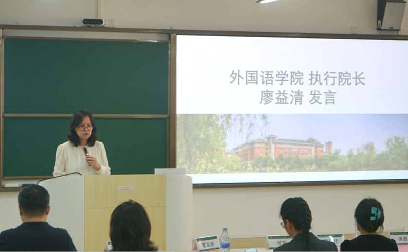 随后,廖院长结合2025级新生入学的生源数据与现象指出,未来教学的关键在于提高教师对人文领域知识的重视。她强调,应让学生回归有温度的人文关怀,将人工智能的理性与人文情怀相结合,实现技术和人文的双轮驱动。廖院长重点指出,在技术之外,思想和情感才是更高层次的追求;面对百年未有之大变局,如何提高语言类专业的地位,是外语学院面临的重大挑战。