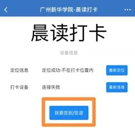 2. 到达晨读场地后,进行定位,连接打卡设备,点击“我要签到”开始晨读活动。