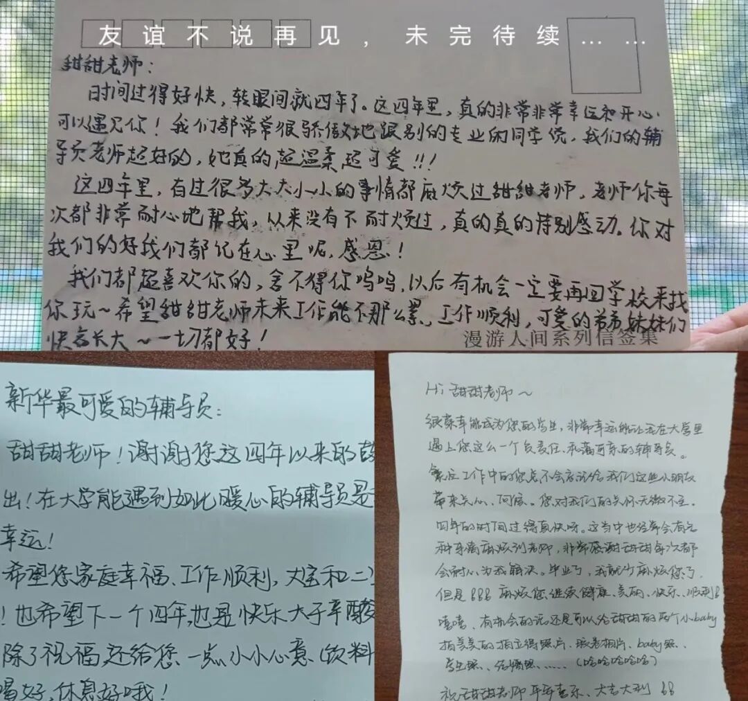 我见证了你们无数个“第一次”:第一次离家的迷茫、第一次站上讲台竞选班委的紧张、第一次获得奖学金的喜悦、第一次失恋的苦涩……宿舍、教室、操场、医院,处处都留下了我与你们沟通交流的身影。我们从最初的陌生到熟悉,从师生到朋友,甚至成为彼此信任的“家人”。