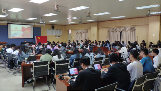 为全面贯彻学生党员学习党的十九届四中全会精神,切实把思想和行动统一到全会精神上来;把智慧和力量凝聚到落实全会确定的各项任务上来;把学习成效体现到增强党性、提高能力、改进作风、推动工作上来,11月14日下午,122cc太阳集成游戏学生党支部在我校东莞校区格物楼②-B605集中召开支部会议,学习第十九届四中全会精神。本次会议由学生党支部书记马丽老师主持。会议共分三项议程,分别为:阅读第十九届四中全会学习资料电子书;集体观看第十九届四中全会精神的相关视频;学生党员分享学习会议精神的心得体会。