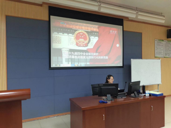 第一项议程由马丽书记带领党员学生阅读第十九届四中全会学习资料电子书。通过对学习资料的阅读,各位党员了解到第十九届四中全会中习近平总书记受中央政治局委托作的工作报告,以及了解了我国国家制度和国家治理体系具有多方面的显著优势。