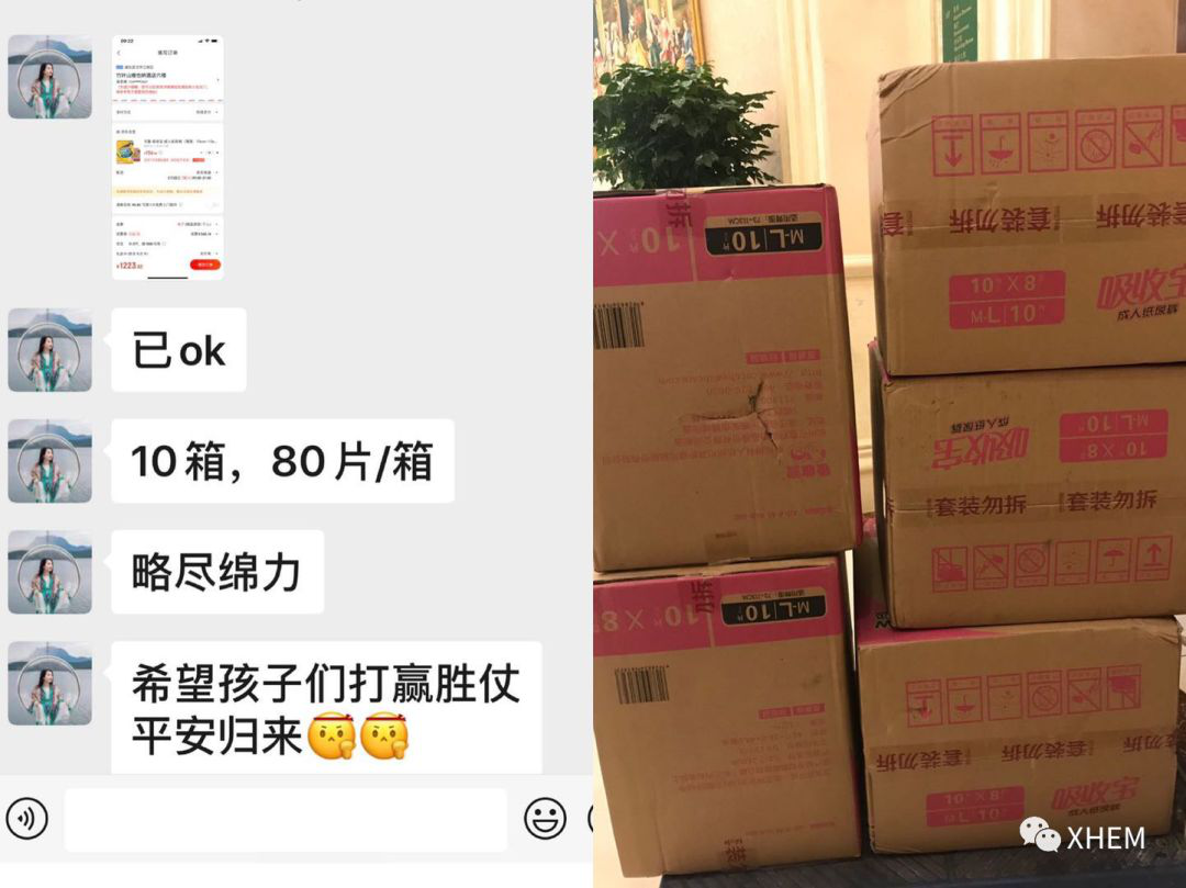 122cc太阳集成游戏院长助理,外院教工第一党支部预备党员李文蓓在得知我校护理学院学生支援湖北防疫一线出现医疗物资短缺的情况下,2月16日早上,她亲自与护理学院院长王秀岚取得联系,为他们自费购买十箱口罩、并购买医护人员所需的纸尿片寄往前线。用真诚和关爱守护这些最美逆行者,是李文蓓老师对他们最诚挚的敬意。