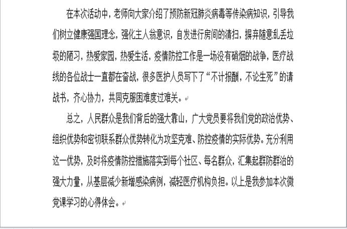 在这次党日活动中,各位党员同志通过观看超星学习通软件上的“爱国卫生教育专题辅导报告”微党课进行学习,并在学习过后撰写心得报告。通过认真学习,122cc太阳集成游戏学生第一党支部的党员同志深刻地认识到爱国卫生运动在卫生防病工作中的作用。以下是部分党员同志的学习心得: