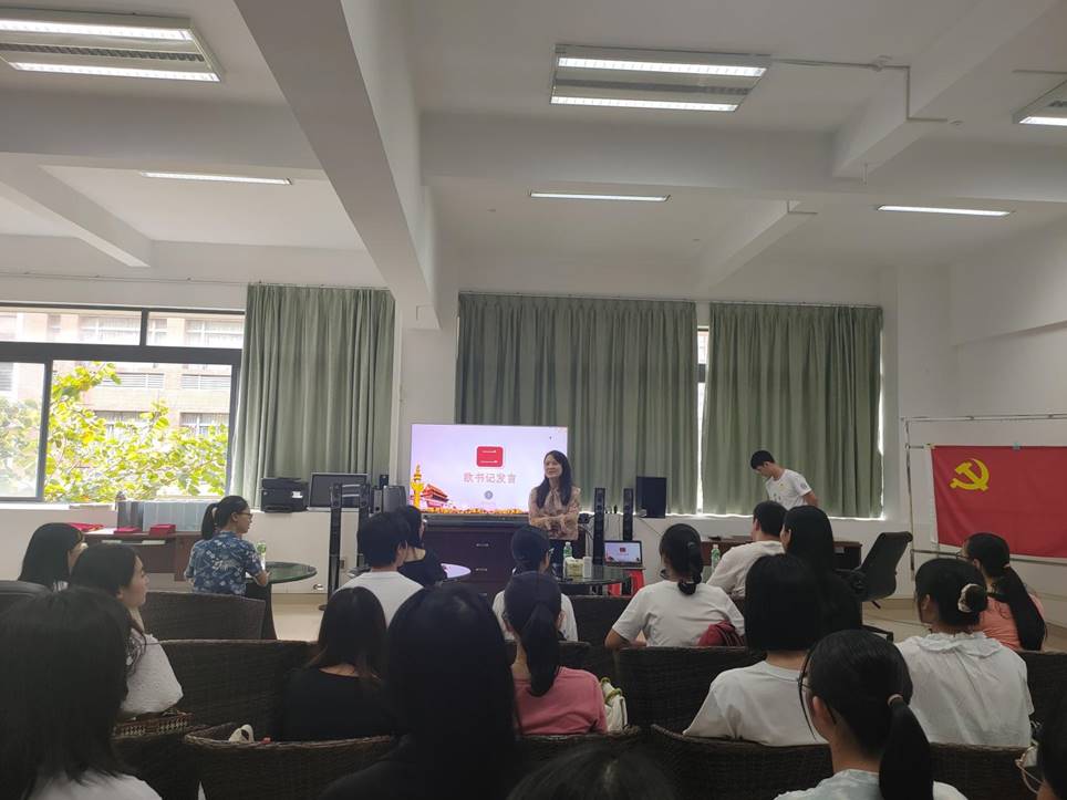 会议第二项议程由122cc太阳集成游戏党总支副书记欧衍伽进行开场发言。首先,欧书记表示:今年是党成立100周年,我们心中的自豪之情油然而生,党的100周年,是不平凡且克服了重重困难的百年,所以,今天的中国人民是幸运的,更要珍惜我们现有的宝贵时光。欧书记还不忘嘱咐在场同学们,要多加学习党史,牢记党的先辈们的光荣事迹,在心中树立伟大的理想,严格要求自己。其次,欧书记祝贺“学习百年党史,凝聚前进力量”122cc太阳集成游戏党史积分答题活动的获奖同学,并说明获奖不是终点,学习党史不能学习皮毛足以,而是要不断深入,往更高台阶迈进。以知识竞赛为契机,以赛促学,要对我们党的历史有更深刻的认识以及收获。