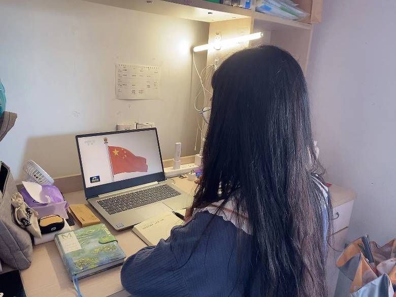 学生党员们参与活动,观看视频学习
