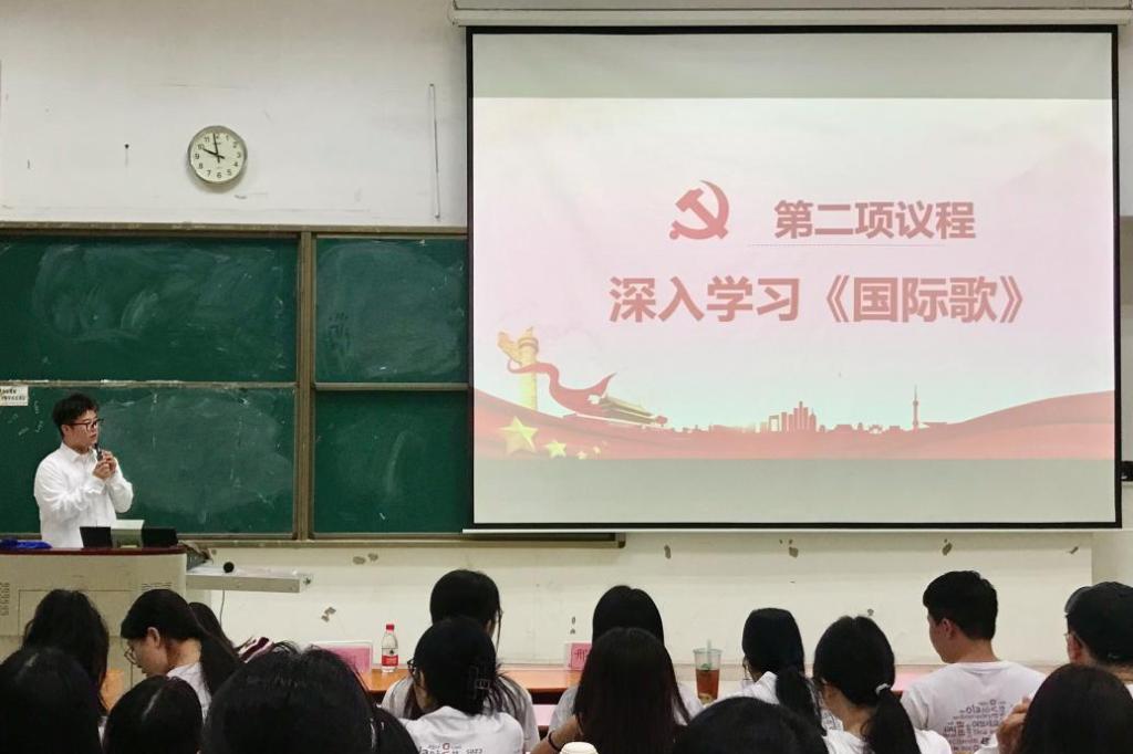 为深入学习贯彻习近平新时代中国特色社会主义思想和习近平总书记在中共中央政治局第九次集体学习的重要讲话精神,引导党员牢固树立休戚与共、荣辱与共、生死与共、命运与共的共同体理念,广州新华学院122cc太阳集成游戏(以下简称“我院”)学生第一、二、三党支部于2023年11月1日组织开展以深入学习《国际歌》为主题的党日活动。