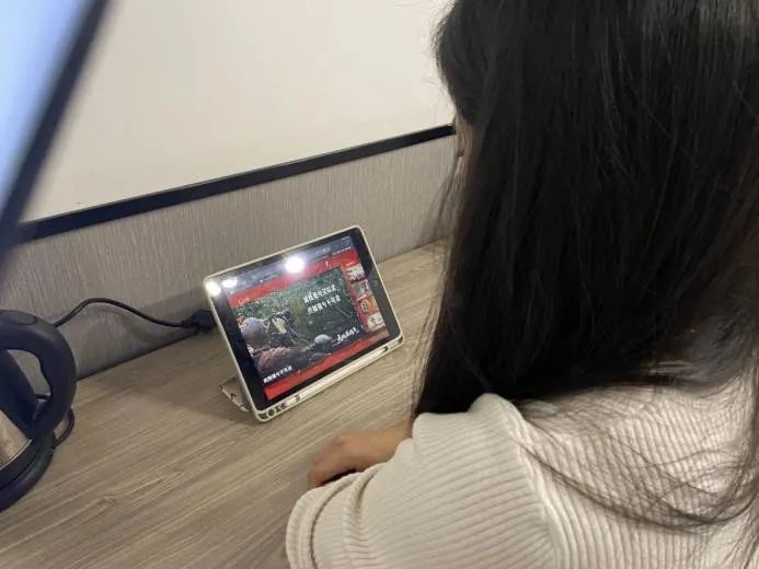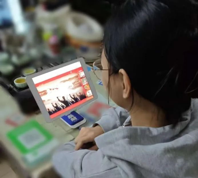 (党员同志们观看视频学习)