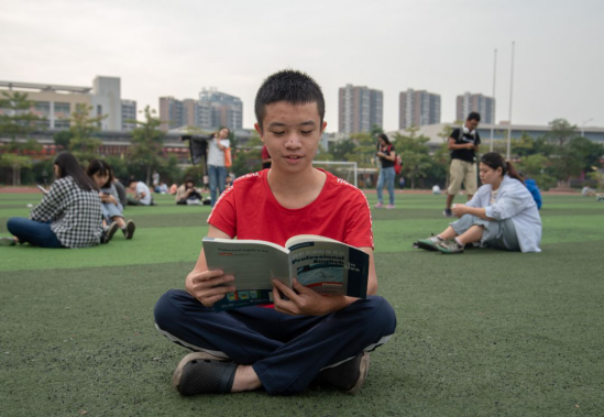 清晨,晨露洗涤过的城市格外宁静,喧嚣和芜杂蒸发得无影无踪,一缕阳光洒进校园。在中大新华的操场中,同学们三三两两的或席地而坐、或倚在墙边、或靠于窗台,手捧书本,用琅琅书声唤醒静谧的校园,迎接崭新的一天。