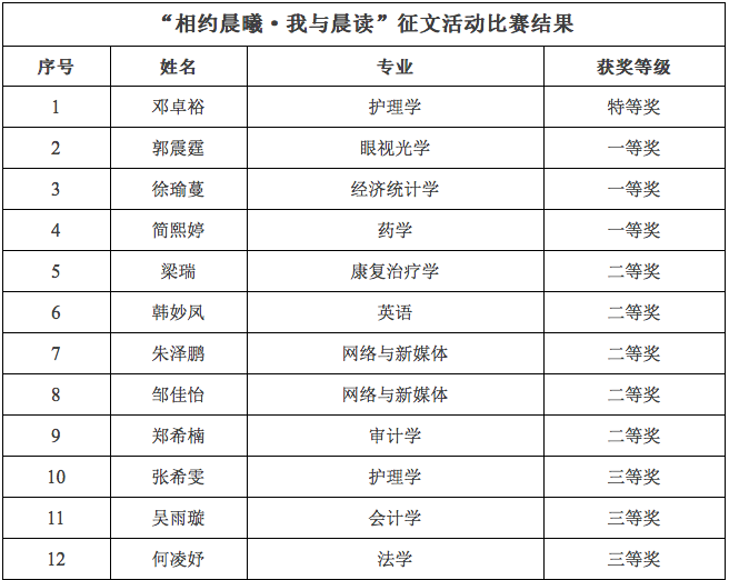 在122cc太阳集成游戏党总支的大力支持下,“相约晨曦·我与晨读”征文大赛由大学外语教学中心、教工第三党支部和学生第三党支部联合举办。 自12月5日征稿以来,广州新华学院学子积极参与,每一篇来稿都承载着同学们对晨读的独特感悟与深情厚谊,字里行间洋溢着青春的气息和对知识的渴望。