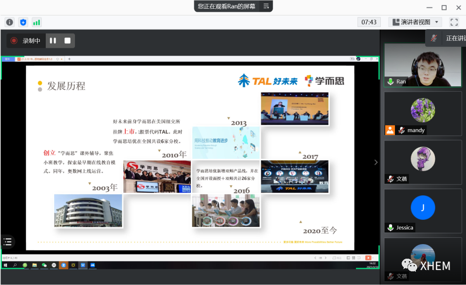首先,学而思培优网课广州基地选培总负责人高冉主管向我院领导和教师介绍了学而思的企业发展历程。他表示,广州是学而思培优五大辅导教师基地之一,在2017年5月成立。高主管希望能够与我院建立长期稳定的合作关系,定期从外院的学生中挑选优秀的实习生和毕业生担任网课辅导教师。集团也会为同学们提供专业的系统化培训,包括线上的岗前培训以及线下岗后系列培训。