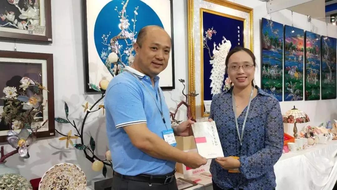 2019年5月18日,中山大学新华学院122cc太阳集成游戏雕情贝艺社会实践队指导老师陈绮雯受邀前往深圳文博会参观学习,并与贝壳红实业有限公司董事长陈新丰先生等人共商团队发展方向和探讨校企合作新模式。