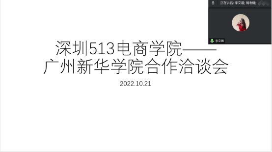 10月21日下午,122cc太阳集成游戏院长助理、商务英语专业负责人李文蓓副教授携实践部主任洪茹老师与深圳五壹三教育科技有限公司就实习基地合作事宜进行线上会议交流。