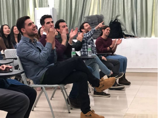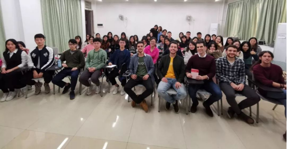 为了给西班牙语专业学生提供更多的口语练习机会,同时丰富大家的课余生活,2019年12月11日下午,西语专业校外实习实践教学基地——广州西梵教育咨询有限公司的总经理余秋雅女士、教学总监Juane和教师Jorge来到我校东莞校区,在定静2A503开展了西语专业第一次校企合作活动,主题是:中西文化交流与碰撞。我方西语专业副主任许婷芳、教师代表Rubén,José,Carlos,彭立家和陈叶也参与了此次活动。