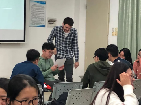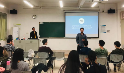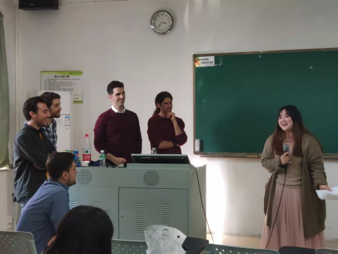 随后的环节由José带来。他讲解了中西文化交流中 estereotipo的文化现象,即社会对某个地方的群体生成一种固定的看法和评价,有的是好的,有的是差的。之后,他让学生们分组讨论中国人对西班牙人形成的固定印象,并组织大家进行分享。