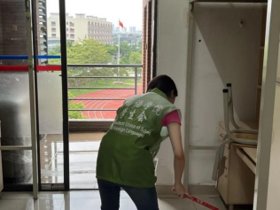 清洁过程中,工作人员们本着一丝不苟的严谨态度,相互配合,井然有序,力求做好迎新工作第一步,不遗漏任何一间宿舍,不放过任何一处角落。从检查宿舍门窗到擦拭衣柜爬梯;从清洗地板污垢到擦抹桌椅墙面,同时还细心保证寝室内外有效通风,以便新生们最大程度上享受安全温馨的居住环境,最终在工作人员们的共同努力下,新生宿舍焕然一新。