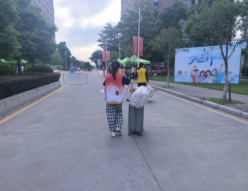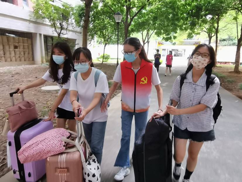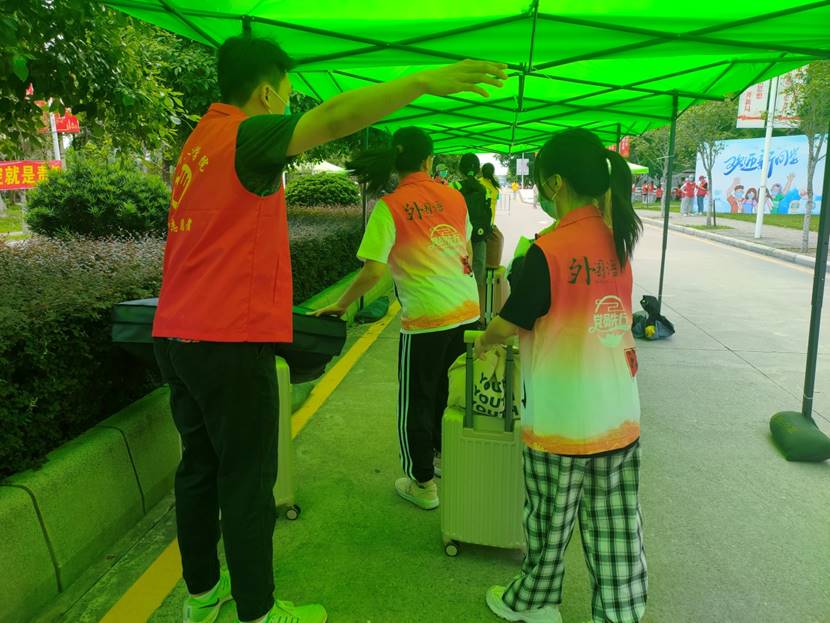 周六的清晨,党员同志们迎着朝阳,早早就来到西门与南门,协助现场老师与志愿者布置现场。同志们怀着满腔热情,协助新生完成报道手续。他们拖着师弟师妹们的行李,快步穿梭在偌大的校园里,为刚到陌生的环境的新生带来温暖。即使天气炎热,也阻挡不了她们为群众服务的热情。21级新生一句“谢谢”,便是党员们为人民服务决心的最大动力!